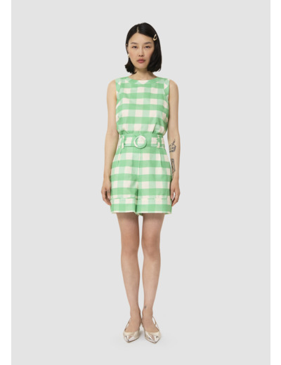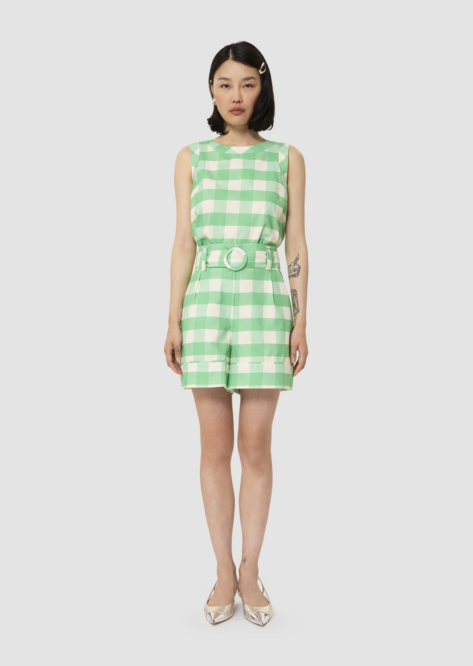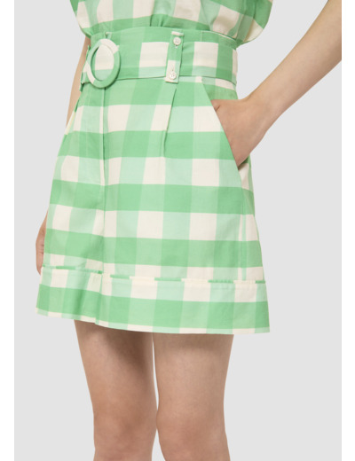 Ce short possède une coupe paperbag et une taille haute marquée d'un ceinture amovible ton sur ton à boucle. Ultra romantique, il est entièrement confectionné en gros vichy vert. Fermeture classique par zip et agrafe.