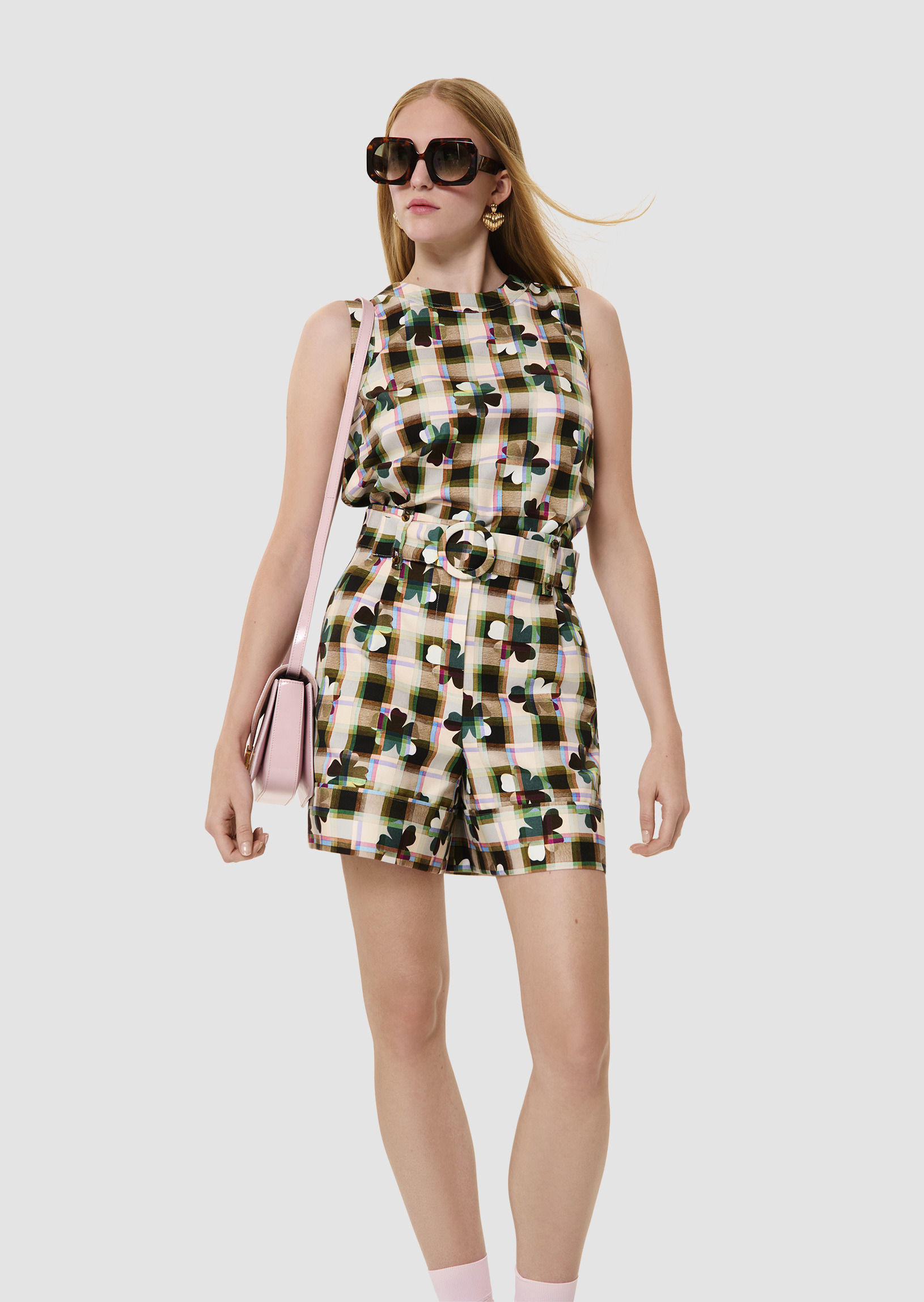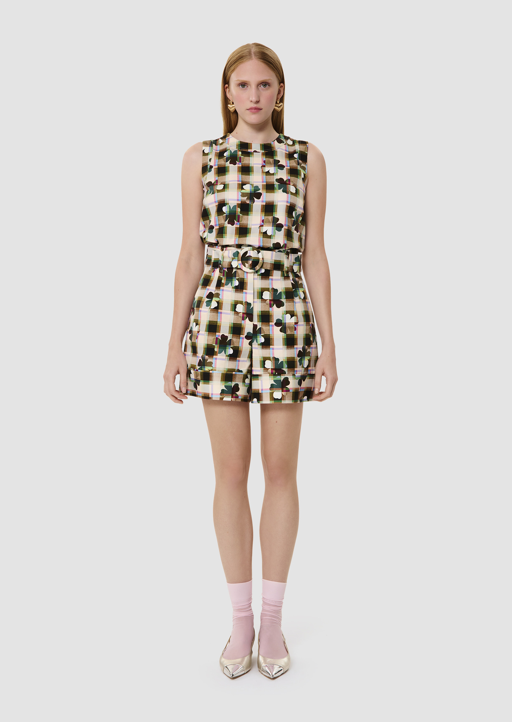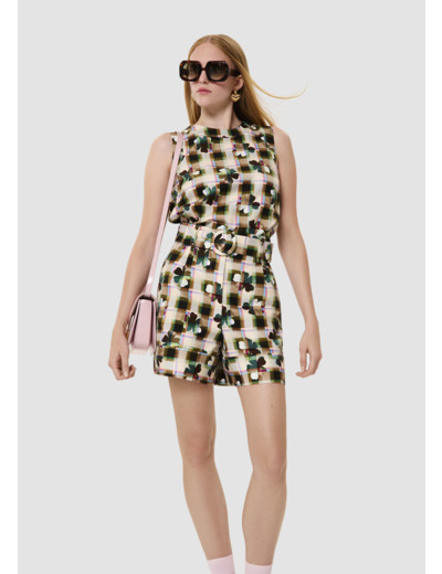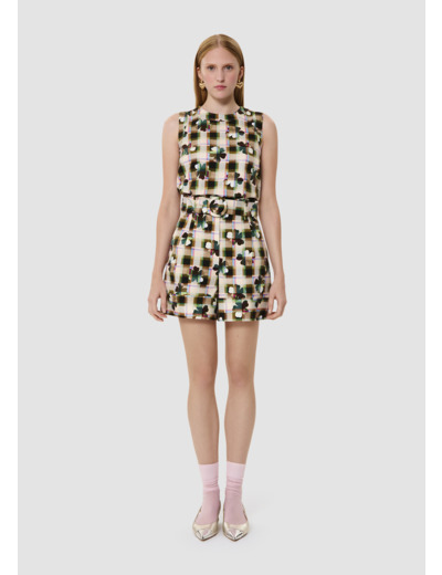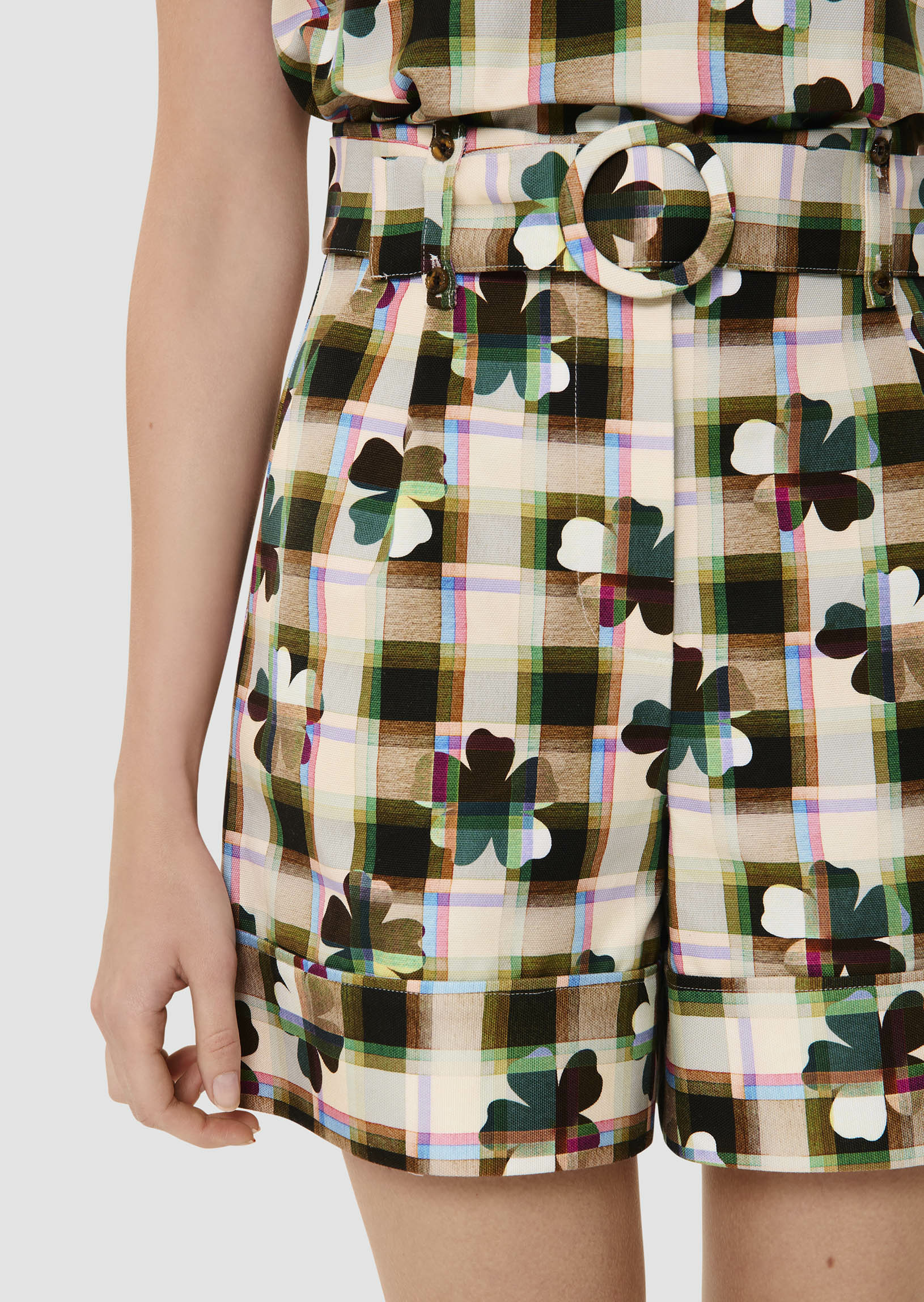 Ce short possède une coupe paperbag et une taille haute marquée d'un ceinture amovible ton sur ton à boucle. Entièrement confectionné en coton, il est entièrement imprimé de notre motif trèfle multicolor. Fermeture classique par zip et agrafe.