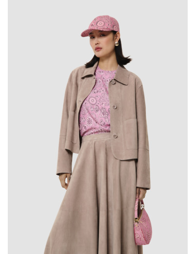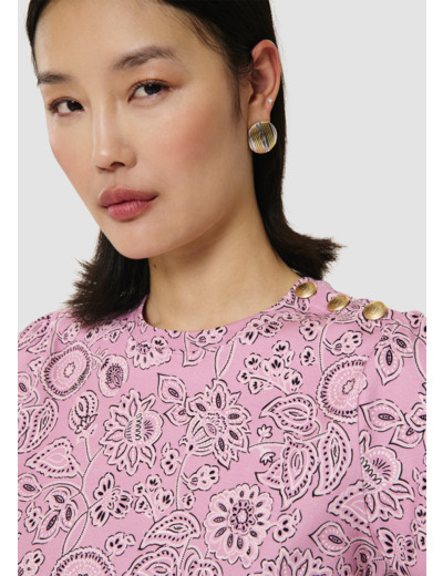 Basique de la garde robe, ce t-shirt couleur bois de rose motif bandana en jersey de coton possède des manches courtes retroussées. Son épaule gauche est décorée de jolis boutons dorés ornés du monogramme de la maison.