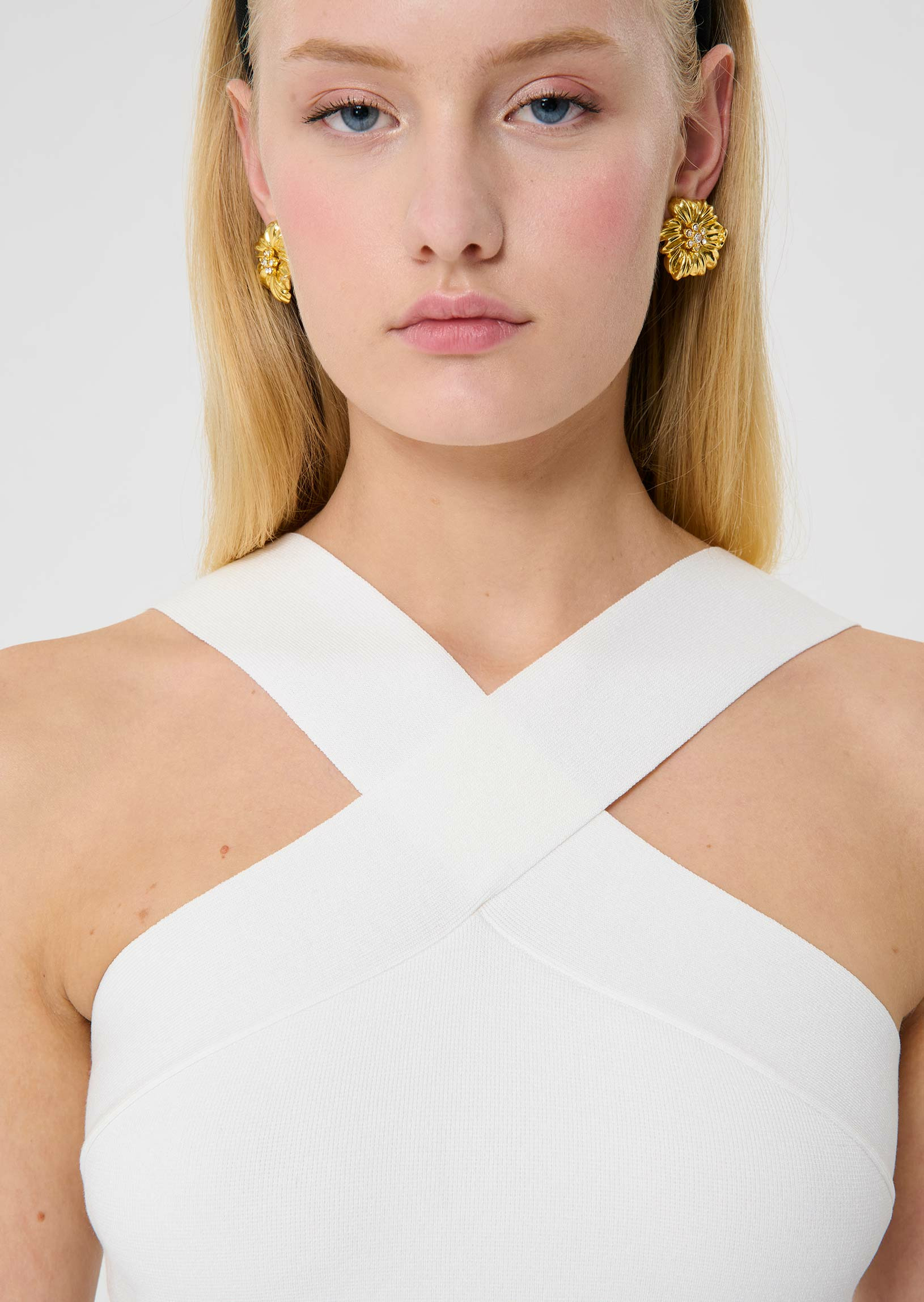 Notre top court Prana revient cette saison dans une version écrue agrémentée de fins fils de lurex. Ses bretelles croisées et sa maille torsadée lui apportent toute son originalité. On les porte aussi bien avec un pantalon pour une tenue de tous les jours qu'avec une jupe longue pour un look plus habillé.