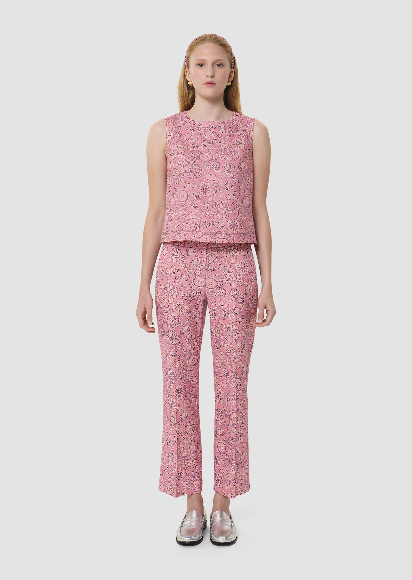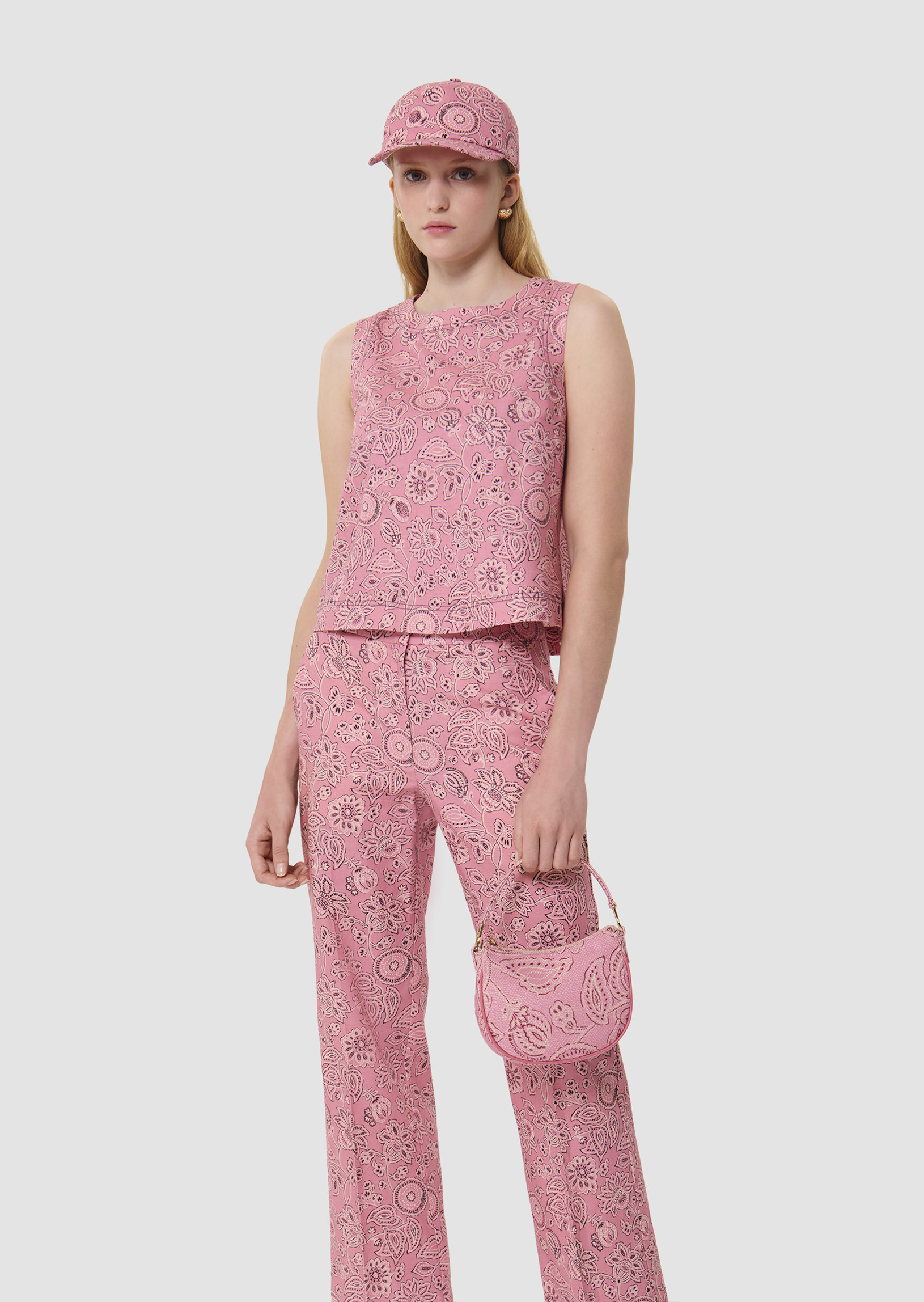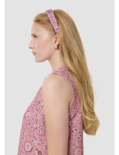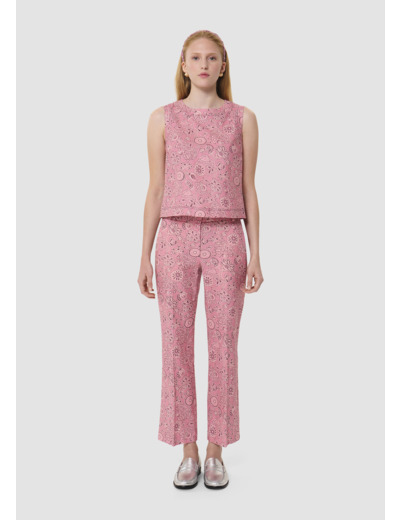 Ce top court couleur bois de rose sans manches en coton possède un col rond. Il est entièrement imprimé de notre motif bandana et il est sûrpiqué pour une allure plus casual. Fermeture par un zip invisible au dos.