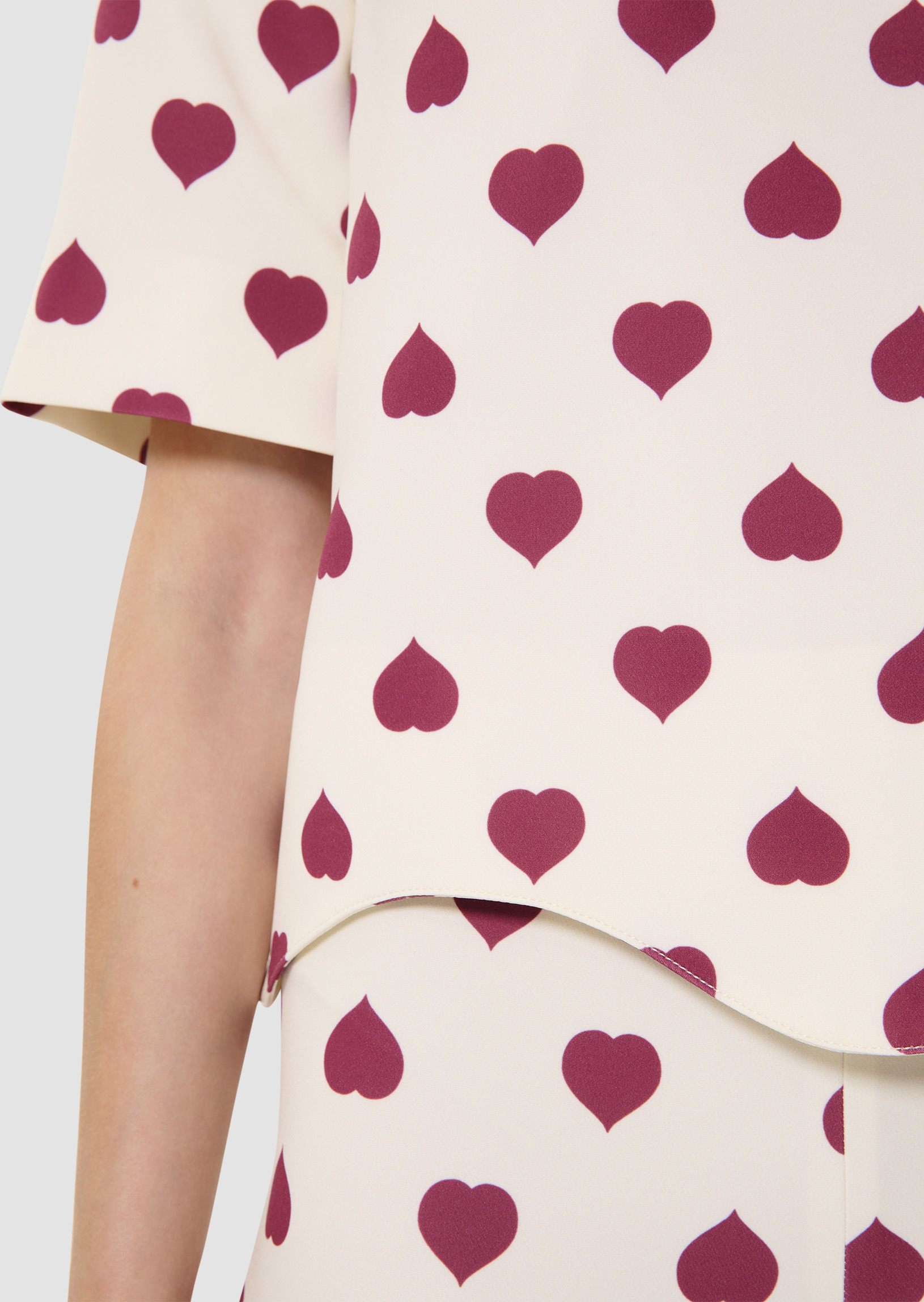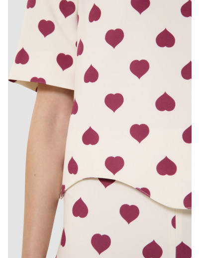 Ce chemisier rose en popeline possède un col chemise et des manches courtes à revers. Il est boutonné au col par de jolis boutons bijoux noirs à strass.