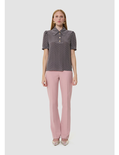 Confectionné dans un mélange raffiné de viscose et de soie, ce top épouse délicatement la silhouette tout en offrant une sensation légère sur la peau. Son design épuré et ses finitions soignées s’adaptent aussi bien à une tenue professionnelle qu’à un look décontracté chic, pour une polyvalence sans compromis.