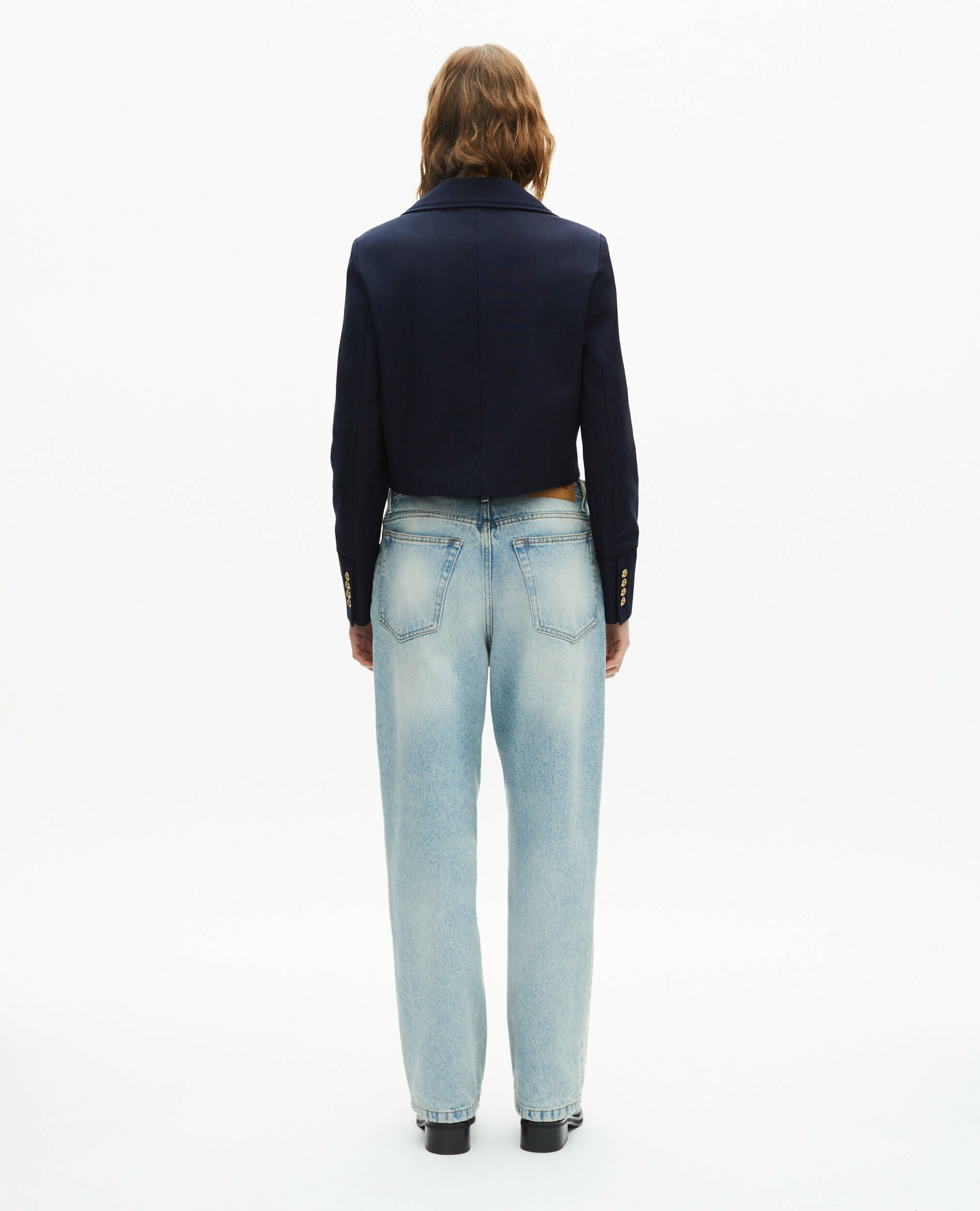 Composition : mélange de laine. Entretien : se référer à l’étiquette pour un nettoyage adapté. Fermeture par double boutonnage avec boutons héritage. Coupe droite, manches longues.