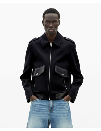 Affirmez votre style avec ce blouson en laine bleu marine signé The Kooples, une pièce alliant élégance et robustesse. Sa coupe droite et ses détails en cuir apportent une touche contemporaine à un classique intemporel.