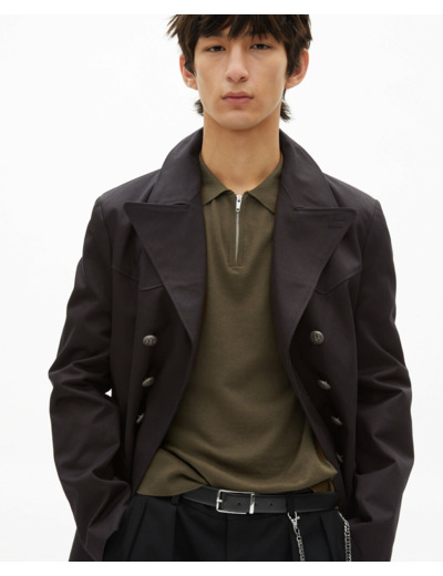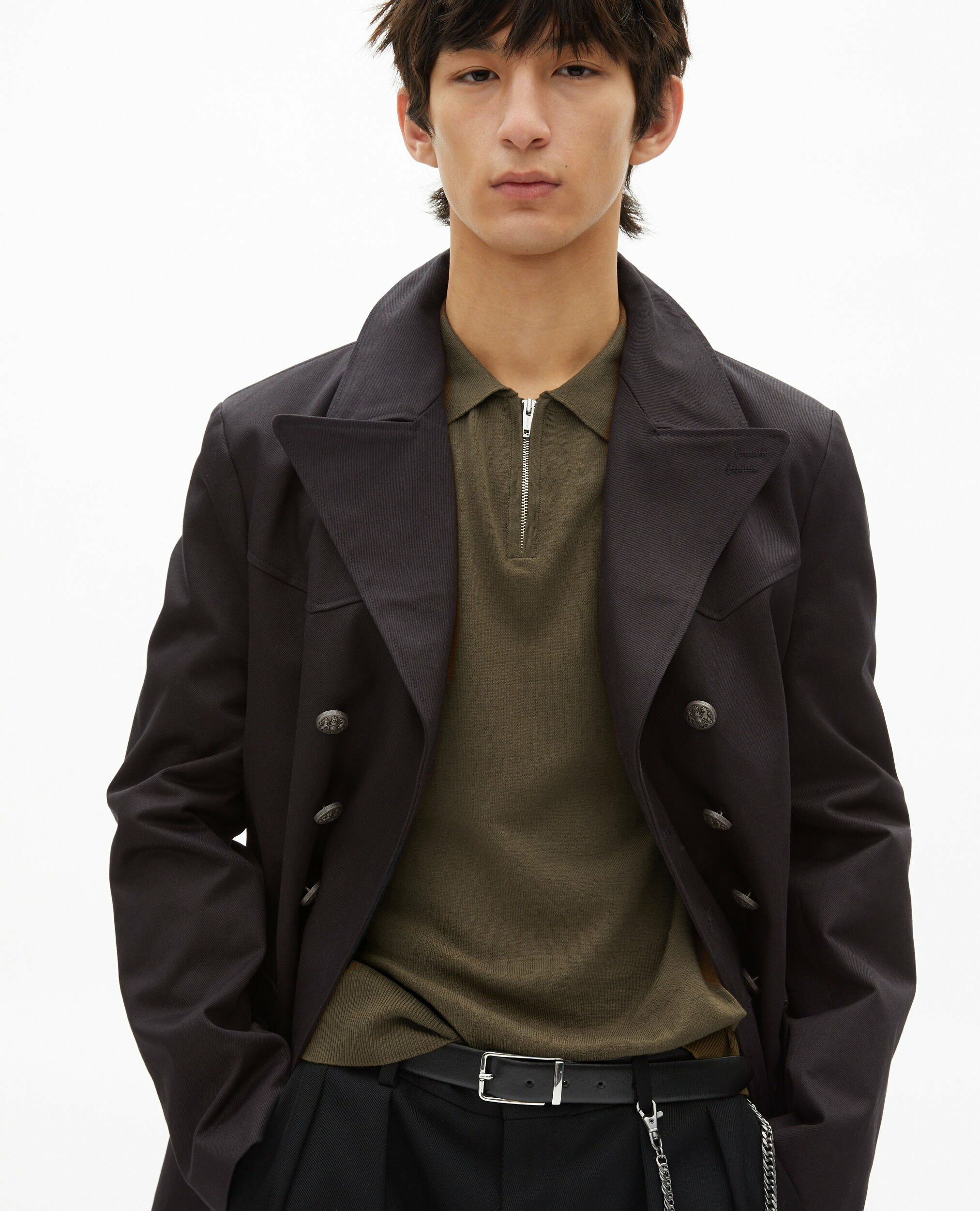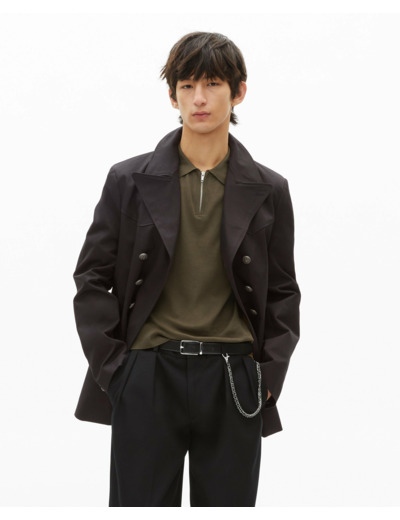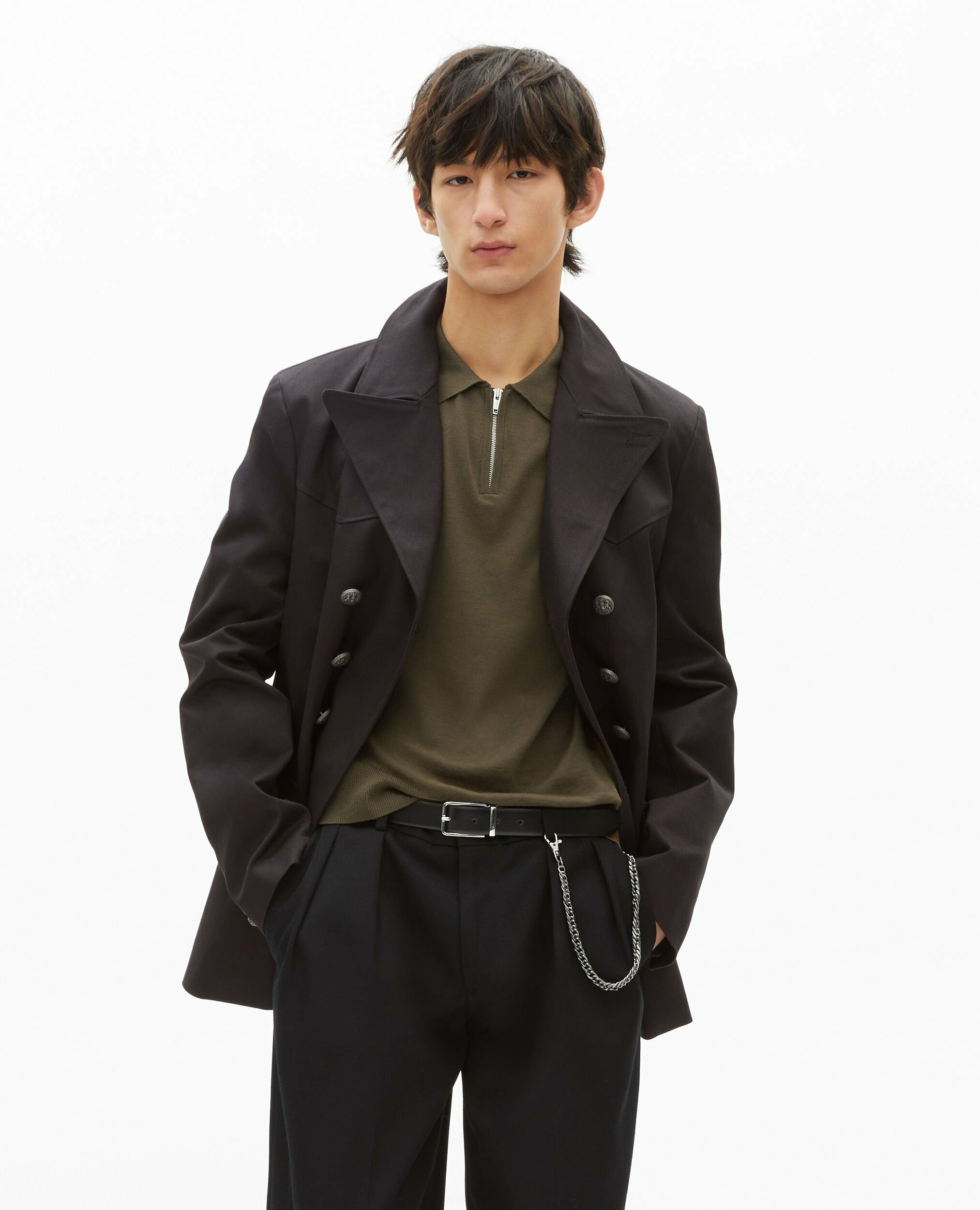 Manteau homme The Kooples en coton, coupe droite, col cranté, découpe western, manches longues, fermeture double boutonnage, poches à rabats, boutons corne aux manches, bas volet dos.