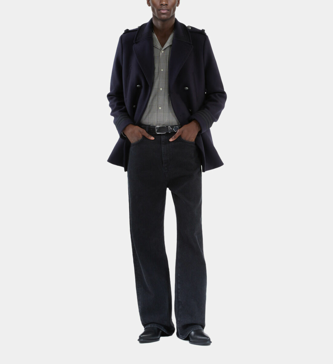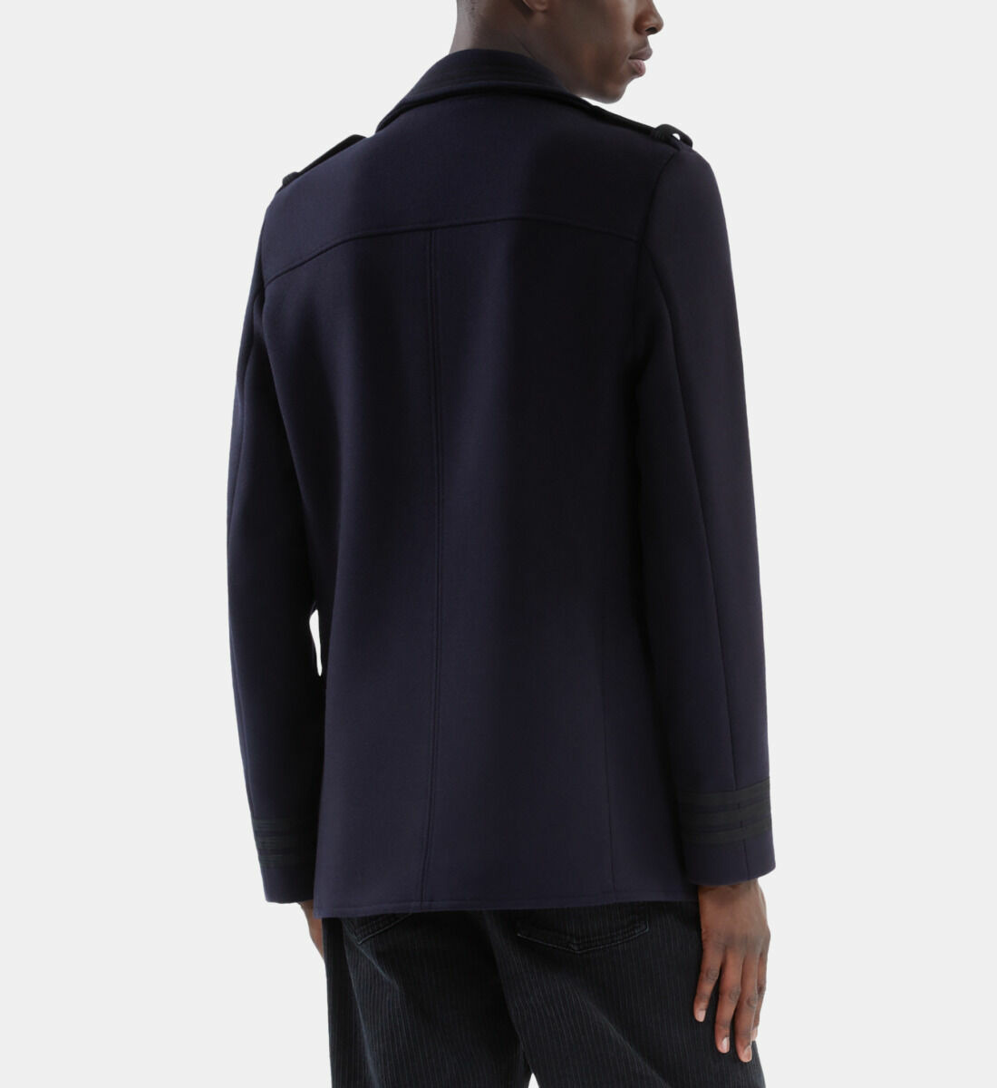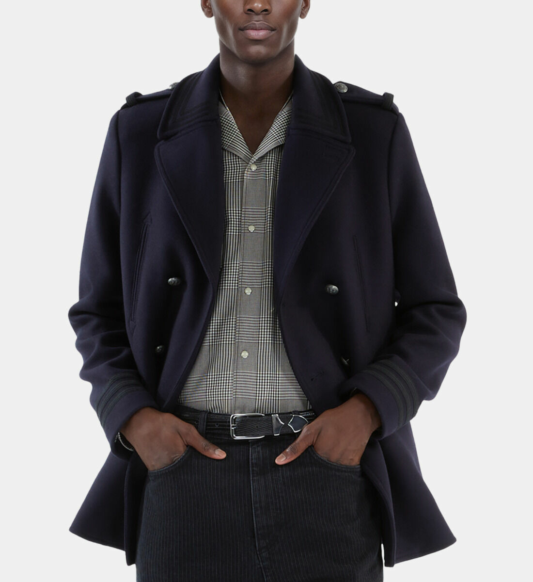 Réponse : Oui, les galons contrastés et les pattes d’épaule apportent une touche distinctive et militaire à ce caban classique.
