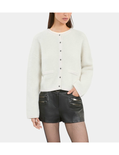 Ce cardigan signé The Kooples se distingue par sa texture légère et moelleuse, idéale pour les journées fraîches. Sa teinte écrue lumineuse apporte une touche de sophistication discrète, facile à associer à toutes vos tenues. Conçu pour accompagner vos looks du quotidien comme vos moments plus habillés, il incarne l’équilibre parfait entre authenticité et modernité.