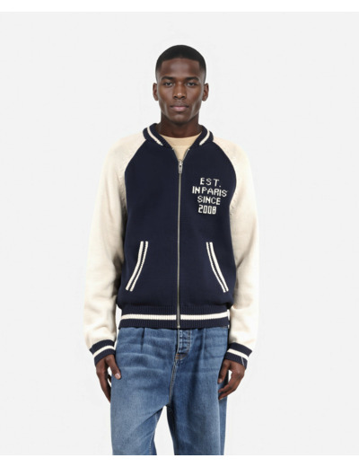 Ce cardigan homme The Kooples est fabriqué dans une composition de qualité. Il se distingue par sa fermeture zippée pratique, ses bords côtes contrastés bicolores, un col rond classique, une inscription sur la poitrine gauche et un motif Skull guitar imprimé au dos.