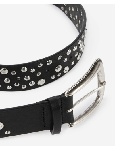 Affirmez votre style avec cette ceinture cloutée en cuir noir, un accessoire audacieux qui transcende les tendances. The Kooples signe un classique rebelle, parfait pour sublimer vos tenues.