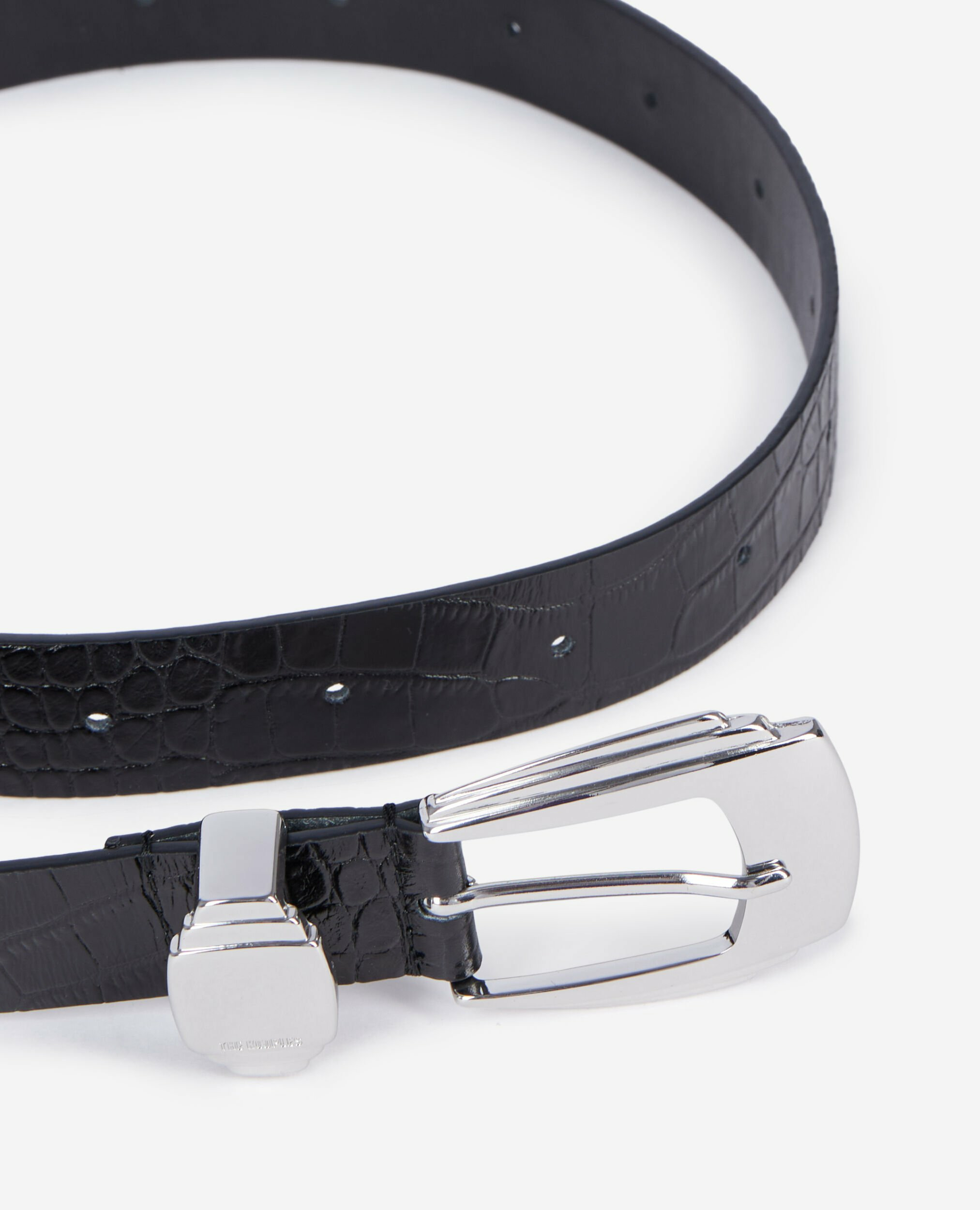 Affirmez votre style avec cette ceinture en cuir effet crocodile signée The Kooples. Une touche d’élégance brute qui sublime toutes vos tenues.
