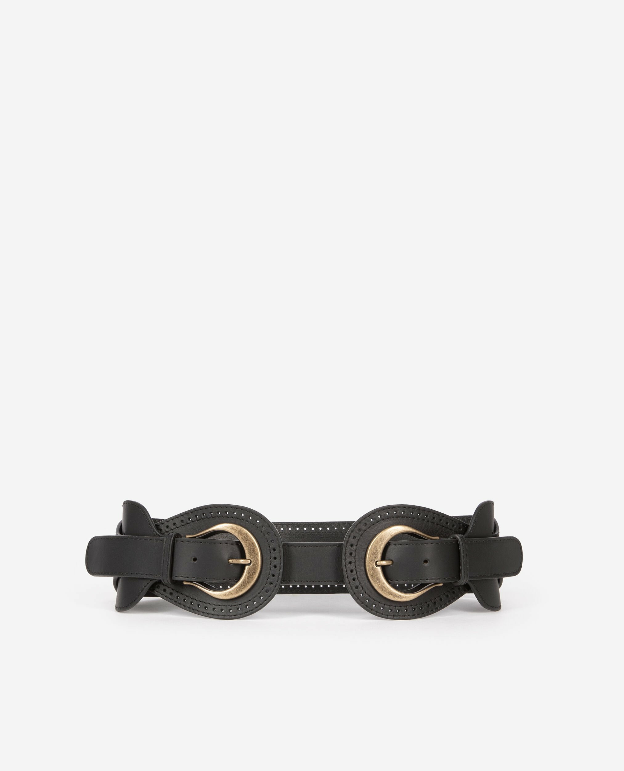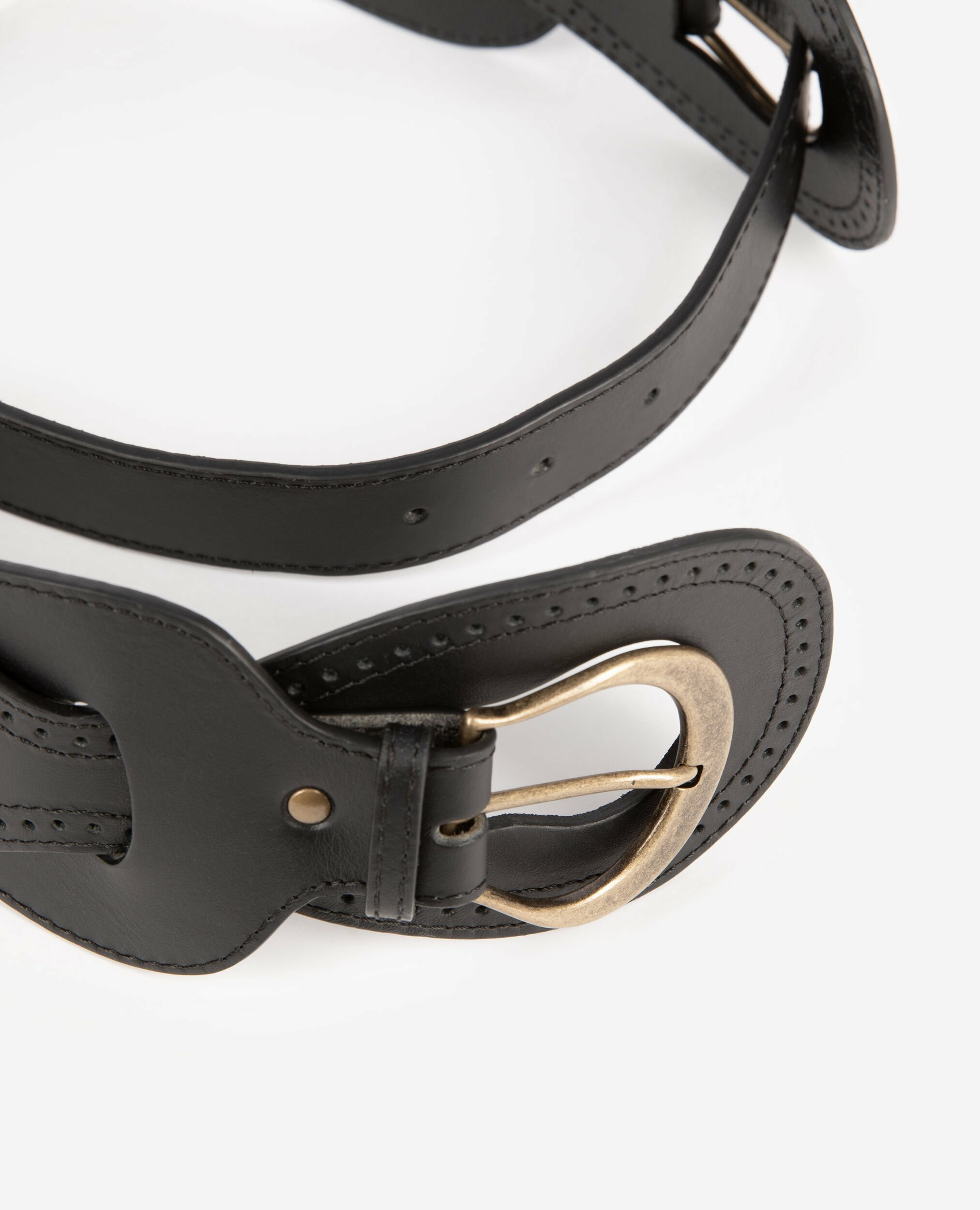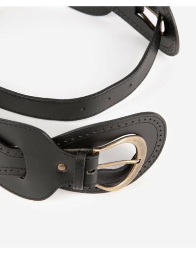 Largeur de 8 cm pour un effet marqué, longueur T1 de 72 cm, cuir lisse et boucles en métallurgie dorée signent la qualité et le raffinement de ce modèle The Kooples.