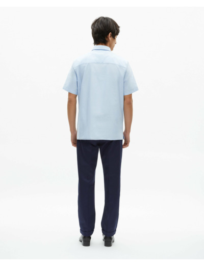 Fabriquée en Oxford, elle présente une coupe droite avec un col classique. Le blason est brodé ton sur ton, la patte de boutonnage est américaine et les boutons sont en nacre.