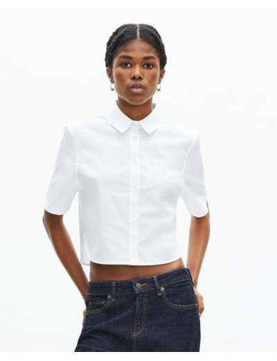 Fabriquée dans des matériaux de qualité, cette chemise femme présente un col classique, des manches courtes, une patte de boutonnage simple, des boutons nacrés et un blason brodé The Kooples, garantissant un produit durable et élégant.