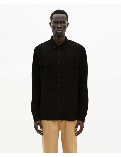 Confectionnée en mix lin, cette chemise à manches longues offre une coupe droite parfaitement équilibrée entre aisance et structure. Son col classique et ses poches plaquées apportent une touche d’authenticité tandis que les boutons noirs et les rivets aux poignets soulignent son caractère soigné et contemporain. L’alliance du lin garantit une sensation de fraîcheur et une respirabilité idéale, même lors des journées les plus chargées.