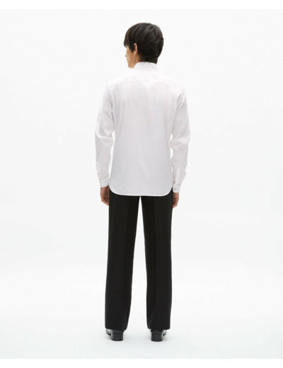 Fabriquée à 98% coton et 2% élasthanne, cette chemise demande un entretien délicat : lavage interdit, pas de blanchiment, séchage en tambour interdit, repassage à 110° maximum, nettoyage à sec avec solvants restreints. Ces précautions assurent la longévité et la qualité du tissu.