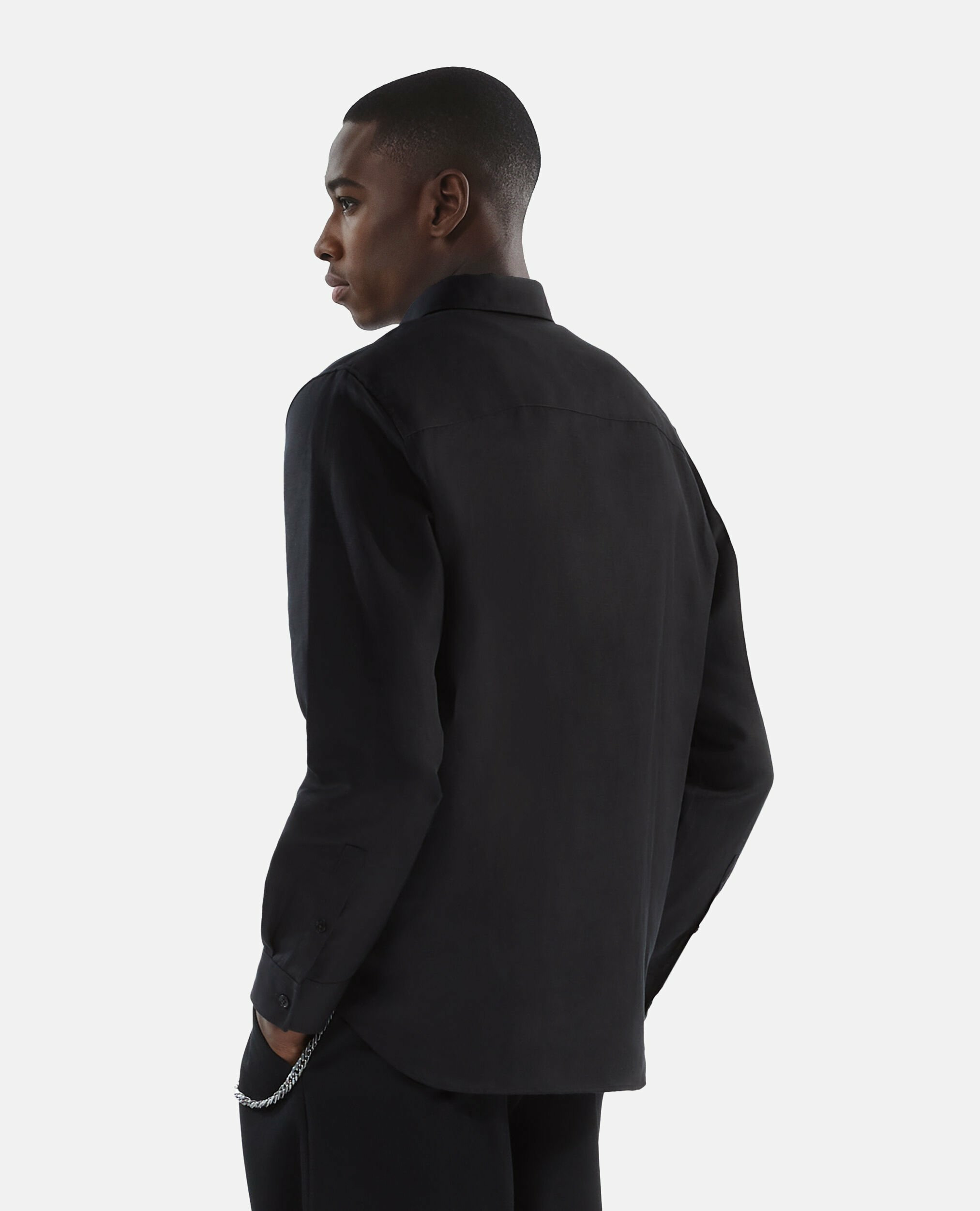 Cette chemise à manches longues se distingue par ses découpes aux épaules, apportant une touche subtile d’originalité sans compromettre le raffinement. Les boutons noirs contrastent délicatement avec le tissu, soulignant le soin apporté aux détails. Polyvalente, elle s’adapte aussi bien à un look professionnel qu’à une tenue casual chic.