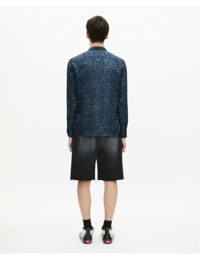 Conçue pour l’homme qui ose, cette chemise associe un imprimé léopard bleu et noir à une coupe droite et un col classique, offrant une silhouette nette et contemporaine. Les manches longues et les boutons noirs aux poignets ajoutent une finition soignée, tandis que la patte de boutonnage simple garantit une mise en place facile et un confort optimal.