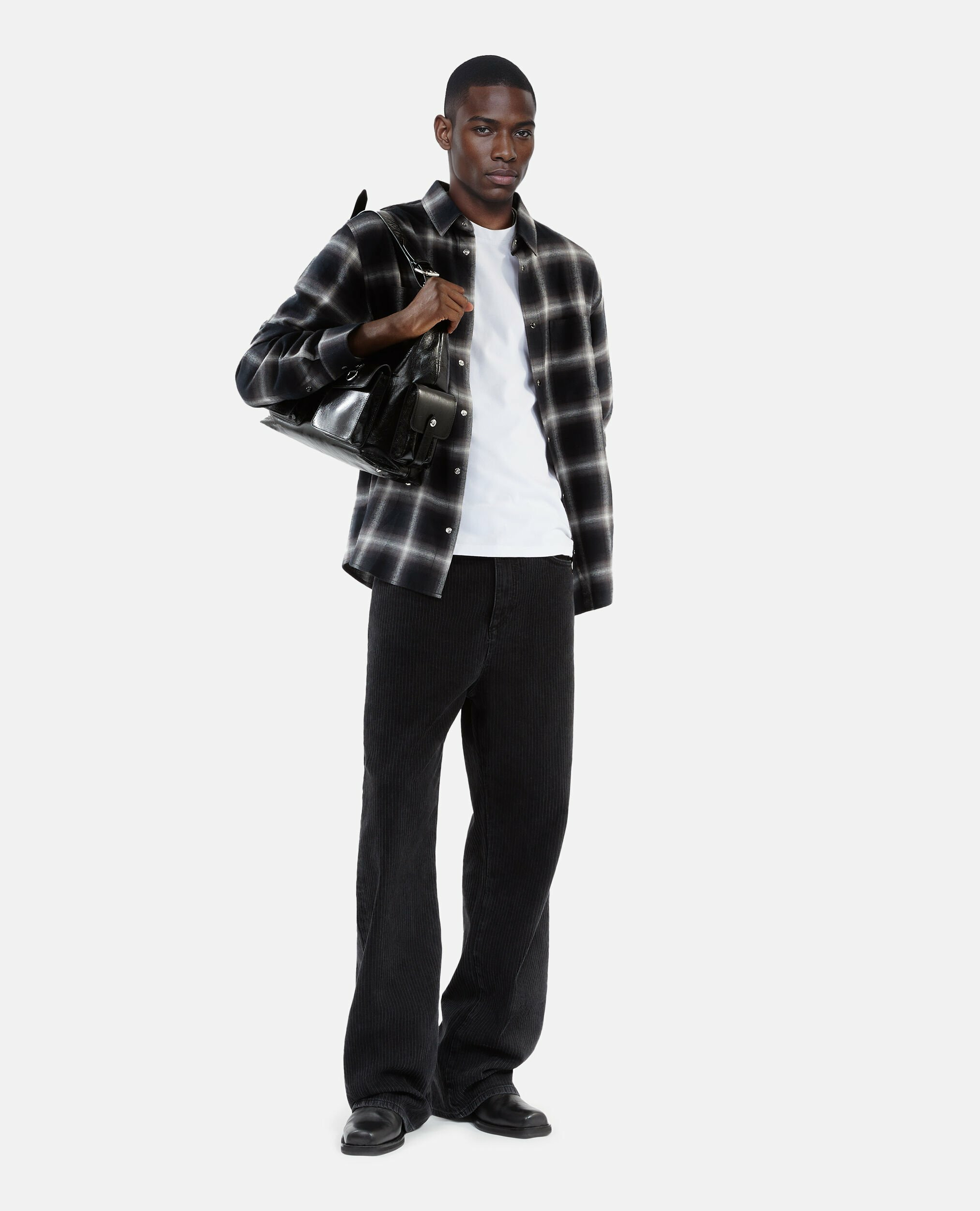 Conçue pour l’homme moderne, cette chemise large mise sur un col classique et une patte de boutonnage américaine, offrant une silhouette à la fois structurée et confortable. Les manches longues et les boutons pression noirs aux poignets ajoutent une touche de sophistication discrète, tandis que les poches plaquées renforcent son esprit casual-chic.