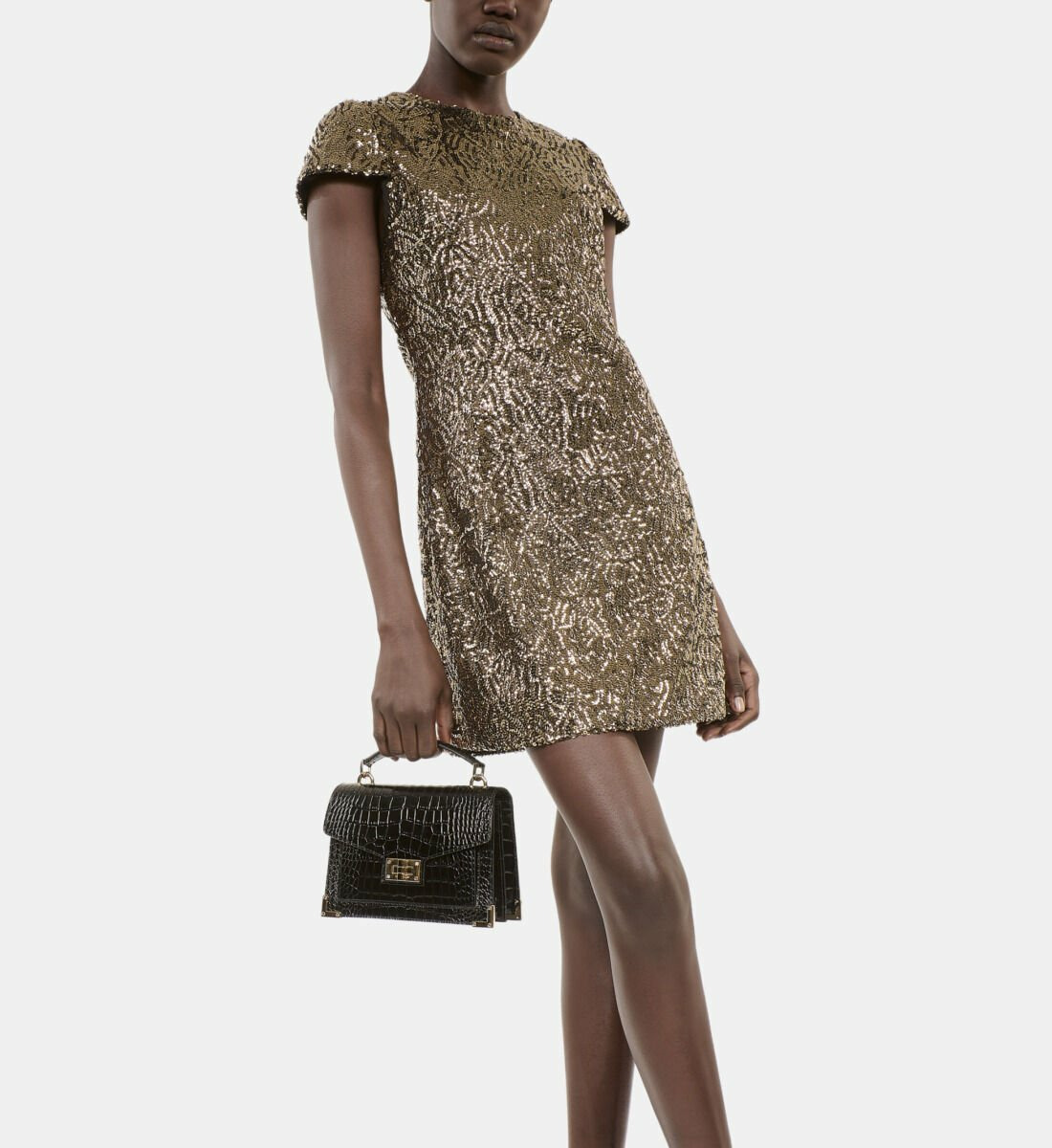 Question ? Quelle est la coupe de cette robe ? Réponse. La robe présente une coupe ajustée qui met en valeur la silhouette féminine.