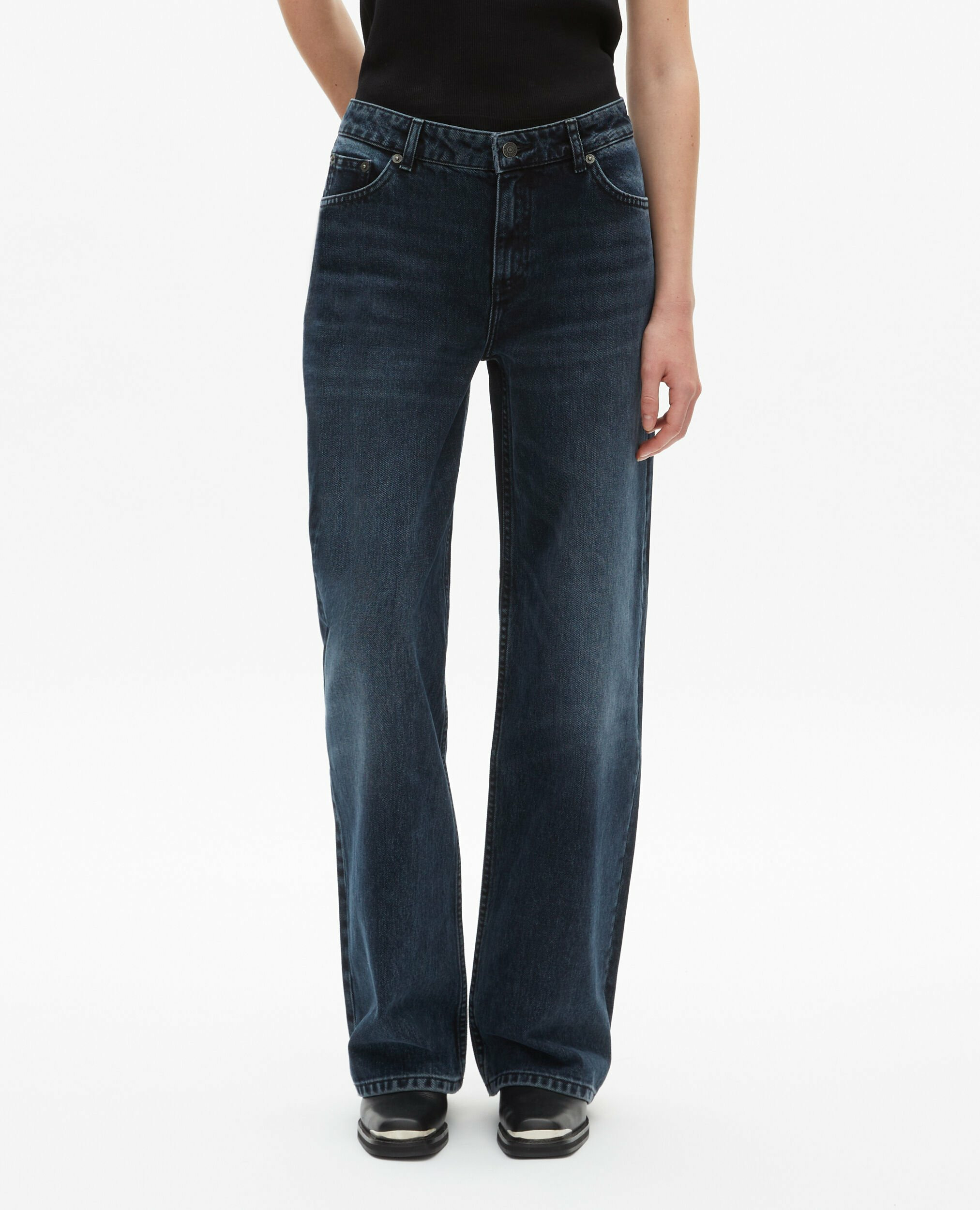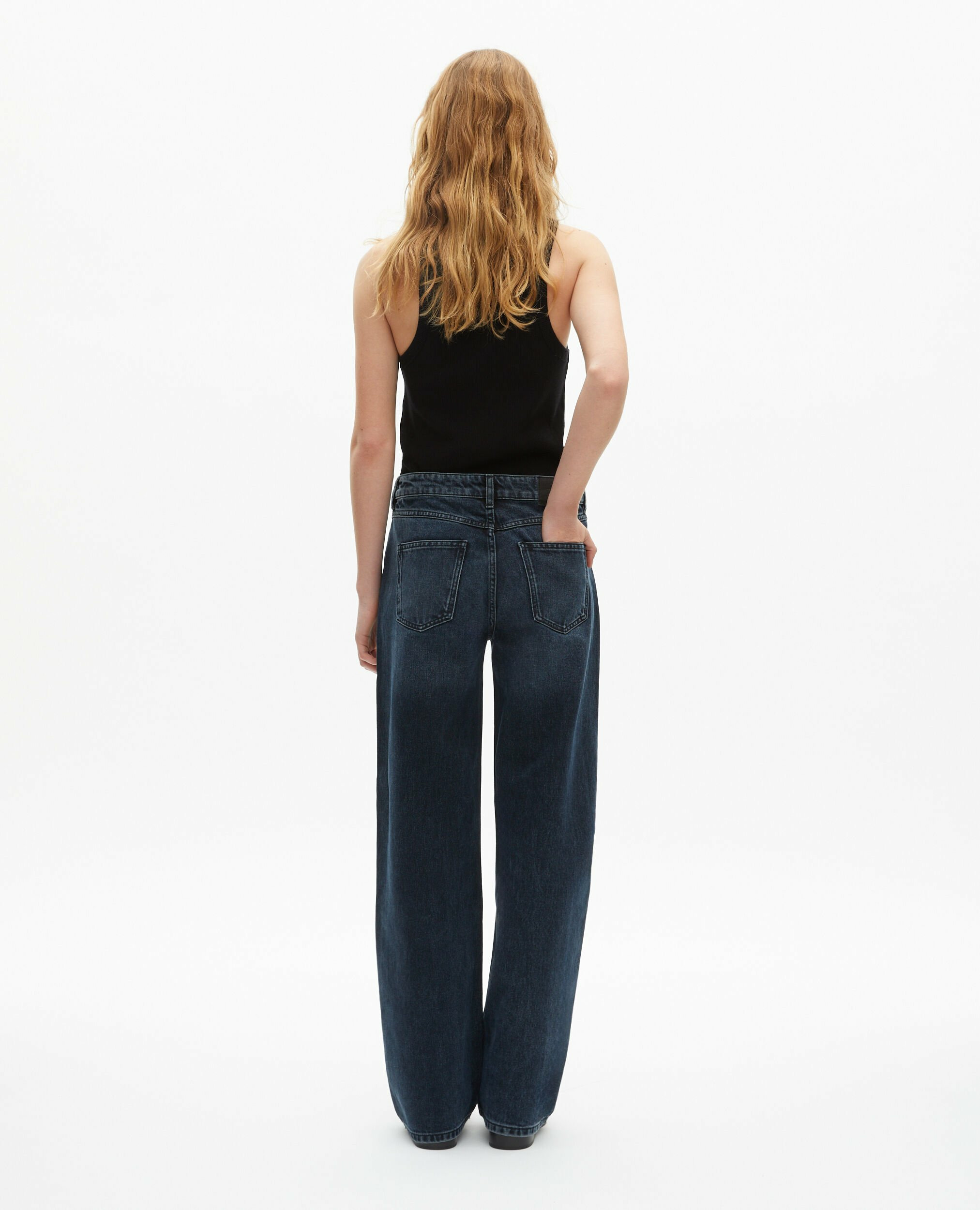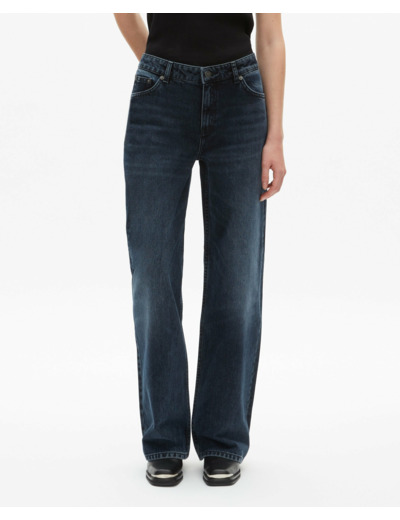 Le jean est composé d’un denim de qualité avec une fermeture à zip et bouton, cinq poches fonctionnelles, une taille moyenne avec passants, et une coupe jambe large pour un confort optimal.