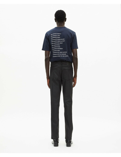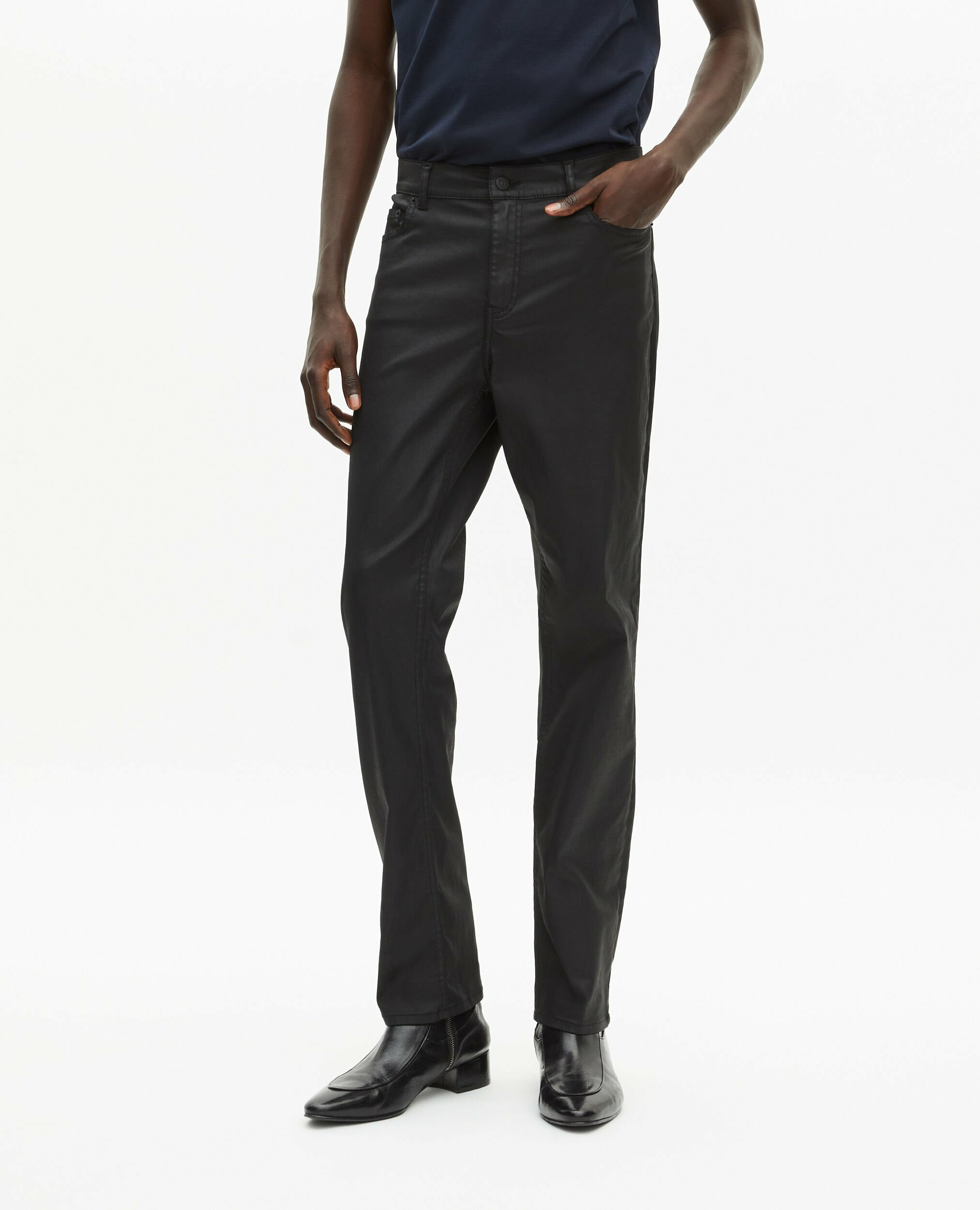 Jean homme The Kooples, taille moyenne avec passants, jambe slim, fermeture zip et bouton, cinq poches.