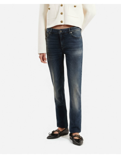 Adoptez l’élégance décontractée avec ce jean bleu foncé The Kooples, conçu pour sublimer votre silhouette tout en offrant un confort optimal. Sa coupe slim longue et sa taille basse apportent une allure moderne et féminine, idéale pour toutes vos tenues du quotidien.