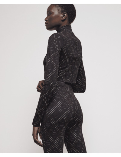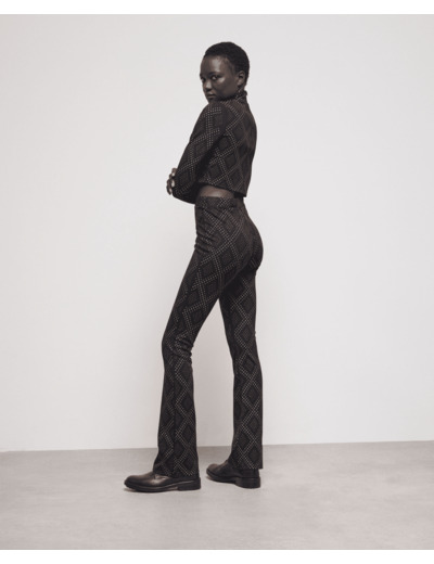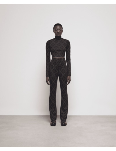 Affirmez votre style avec ce jogging noir orné de strass en motifs losanges, alliant confort et audace. Une coupe flare qui sublime la silhouette tout en offrant une allure résolument moderne.
