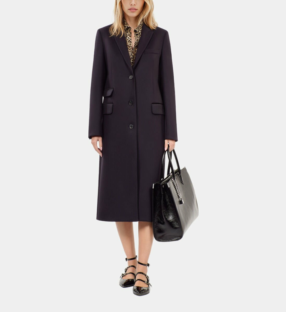 Adoptez l’élégance intemporelle avec ce manteau long en laine mélangée bleu marine signé The Kooples. Une pièce essentielle pour affronter l’hiver avec style et confort.