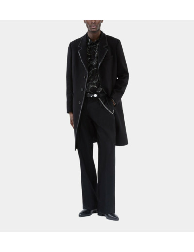 Confectionné dans une laine mélangée de qualité, ce manteau se distingue par sa coupe longue et épurée, idéale pour structurer la silhouette tout en offrant une protection optimale contre le froid. Son coloris noir profond s’adapte à toutes les tenues, du costume formel aux looks casual, pour un rendu toujours sophistiqué et moderne. La texture douce et légèrement texturée apporte une touche de caractère sans sacrifier la sobriété.