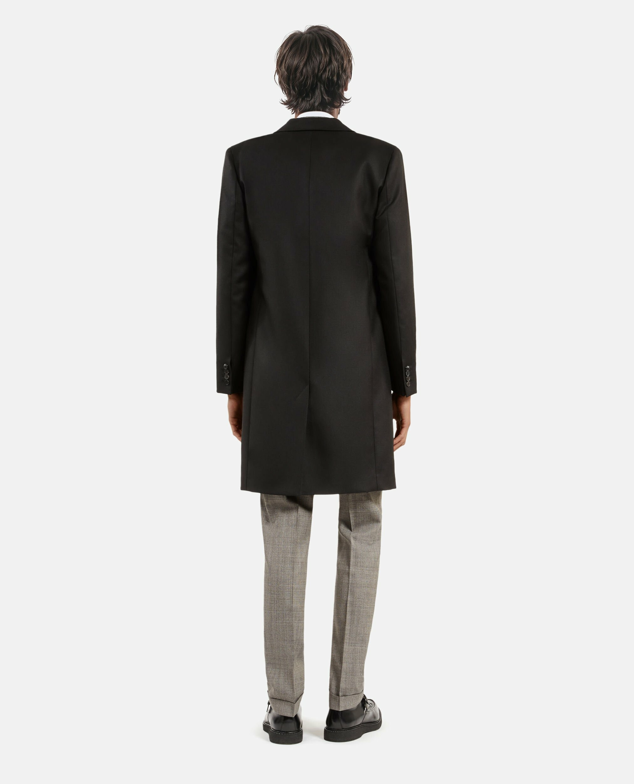Confectionné en laine, ce manteau présente une coupe droite avec col cranté et manches longues. Il se ferme par trois boutons et dispose de poches passepoilées à rabat. Les boutons héritage renforcent son caractère distinctif. Entretien selon les recommandations du fabricant.