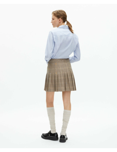 Conçue pour allier structure et mouvement, cette jupe droite à taille moyenne séduit par son boutonnage devant et son plissage au dos qui apporte une touche de dynamisme. Les poches plaquées et les boutons héritage renforcent son caractère unique, tandis que sa longueur de 37 cm en taille 36 assure une allure contemporaine et facile à porter au quotidien.