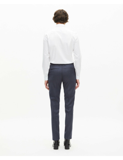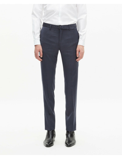 Pantalon homme The Kooples en laine, taille moyenne avec passants et ceinture. Jambe ajustée pour une silhouette affinée. Poches latérales italiennes et poches dos passepoilées. Fermeture zippée avec bouton de rappel et agrafe. Tissu italien de haute qualité. Pour un look complet, associez-le au modèle HVES30001KBLU01.