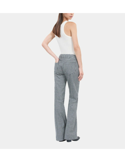 Confectionné dans un mélange noble de laine et fibres techniques, ce pantalon épouse parfaitement vos formes tout en offrant un confort durable. Le motif vichy apporte une note rétro-chic, idéale pour sublimer vos looks professionnels ou casual avec une pointe de caractère. Sa coupe flare équilibre la silhouette, allonge les jambes et apporte une allure sophistiquée sans effort.