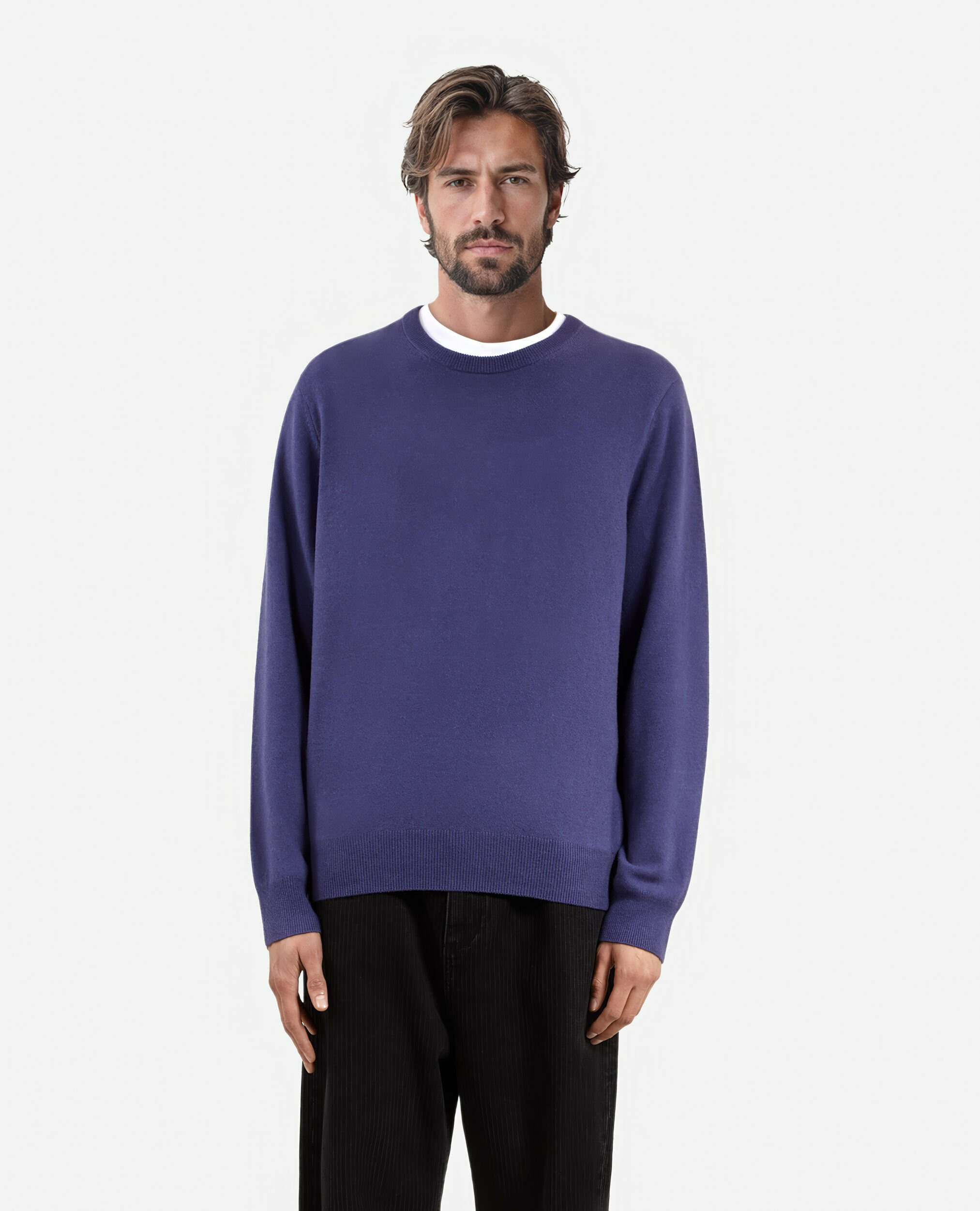 Ce modèle allie douceur et style grâce à son col rond classique et ses manches longues parfaitement ajustées. Les bords côtes apportent une finition soignée qui garantit une tenue impeccable au fil du temps. Idéal pour enrichir votre garde-robe avec une pièce à la fois raffinée et facile à porter au quotidien.