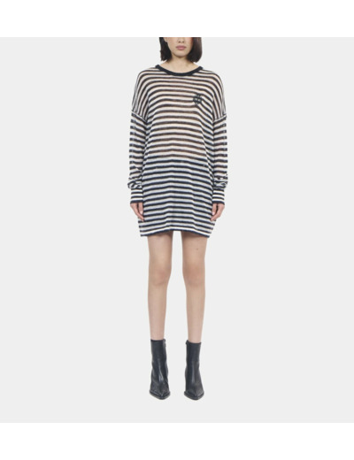 Adoptez l’élégance décontractée avec ce pull en mohair et laine signé The Kooples. Ses rayures noires et blanches apportent une touche graphique et moderne à votre garde-robe hivernale.