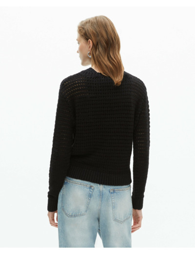 Conçu dans une coupe droite et doté d’un col rond classique, ce pull allie confort et élégance. La maille ajourée apporte une texture unique, tandis que les bords côtes assurent une tenue parfaite et structurée. Idéal pour superposer ou porter seul, il s’adapte à toutes vos envies mode.