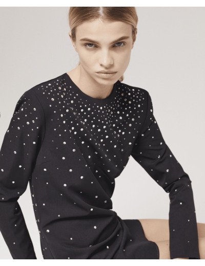Sublimez vos soirées avec cette robe courte noire ornée de strass, alliant élégance et audace. Son dos nu et ses manches longues créent un équilibre parfait entre séduction et sophistication.