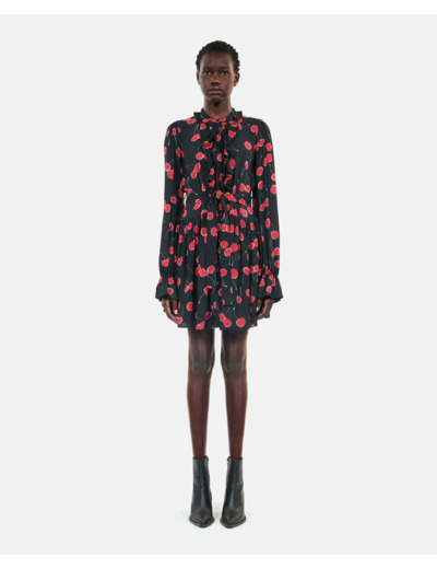 Succombez à l’élégance audacieuse de cette robe courte The Kooples, sublimée par un imprimé cerises noir et rouge qui attire le regard. Une pièce qui allie féminité et confort pour un style affirmé en toutes occasions.