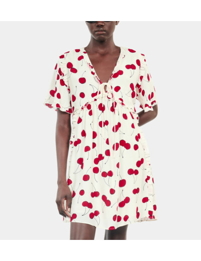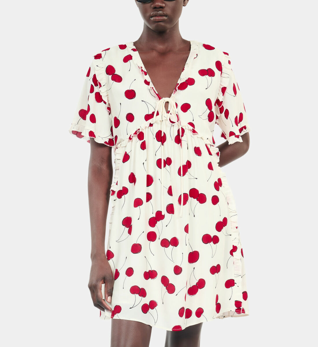 Succombez à l’élégance fruitée de cette robe courte The Kooples, où l’imprimé cerise rouge et blanc dynamise votre silhouette avec fraîcheur et modernité. Une pièce audacieuse qui allie féminité et confort pour sublimer chaque moment.