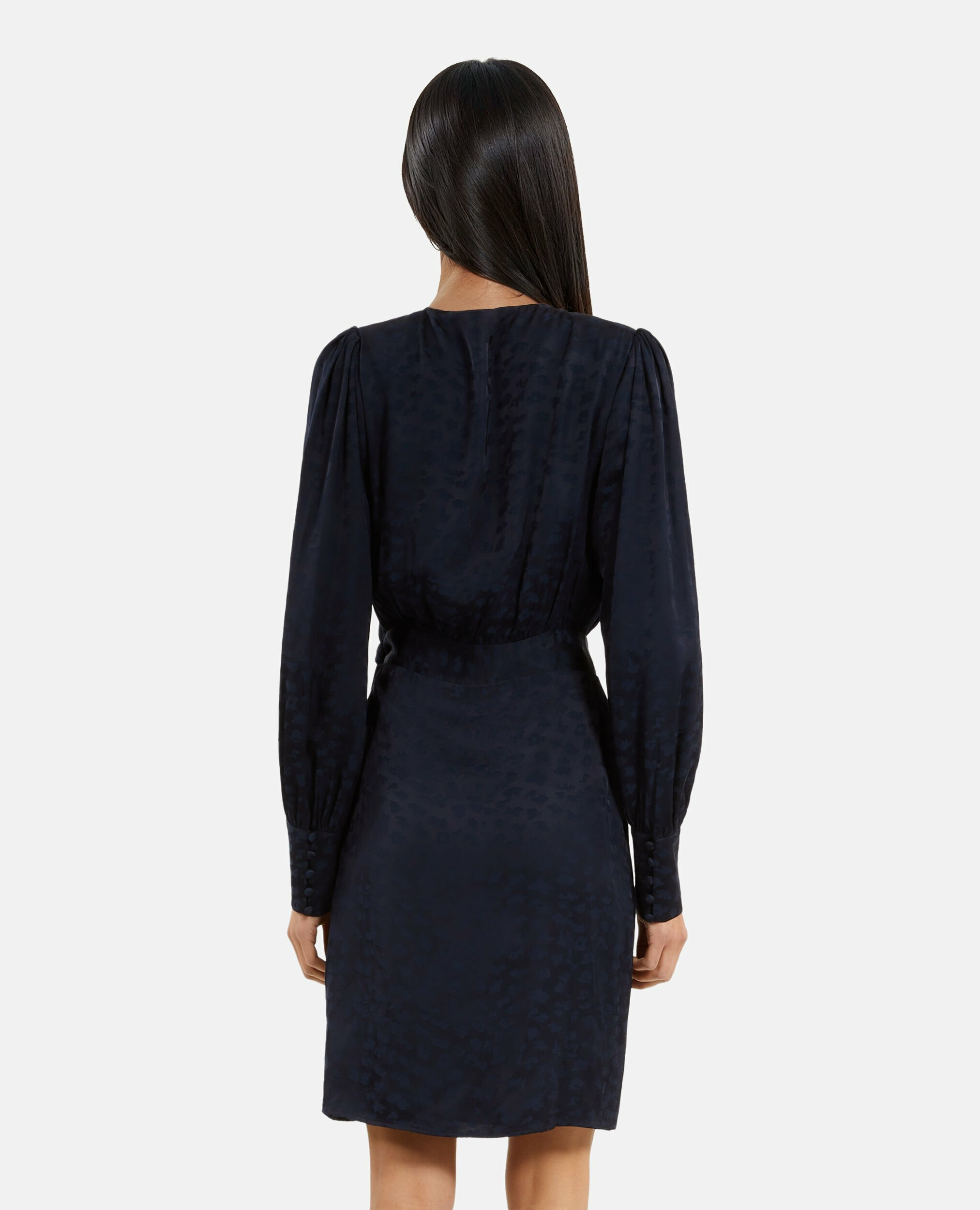 Robe femme The Kooples en jacquard léopard, manches longues avec boutons aux poignets, taille nouée pour un ajustement parfait. Longueur 93,3 cm pour une taille 36.