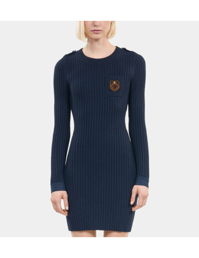 Conçue dans une maille douce et structurée, cette robe épouse délicatement les formes tout en offrant une liberté de mouvement optimale. Sa teinte bleu marine profonde s’adapte à toutes les occasions, du bureau à une soirée décontractée, pour une allure toujours maîtrisée. Les finitions soignées et le poignet en coton apportent une touche de raffinement discrète.
