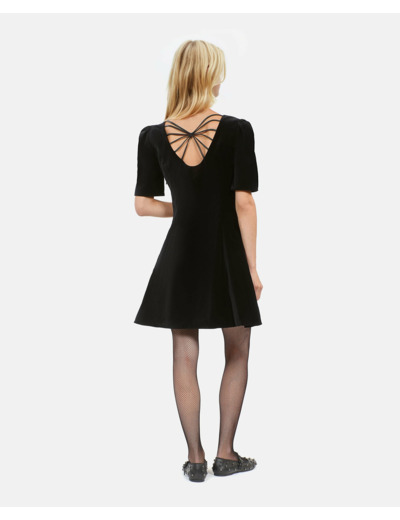 Question ? Cette robe convient-elle pour un événement formel ? Réponse. Oui, son velours noir et sa coupe élégante la rendent idéale pour des occasions habillées.