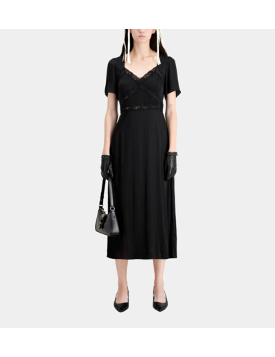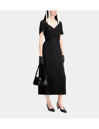 Conçue par The Kooples, cette robe associe la douceur de la viscose à la finesse du polyamide pour la dentelle, offrant un tombé fluide et un confort optimal. Son design raffiné met en valeur le buste tout en assurant une allure légère et aérienne, idéale pour une soirée ou un événement chic.