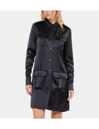 Adoptez l’élégance audacieuse avec cette robe saharienne courte bleu marine, un incontournable pour sublimer votre silhouette avec simplicité et caractère. Son bleu profond apporte une touche de modernité à un classique revisité.