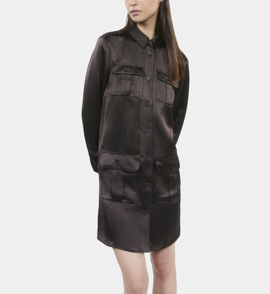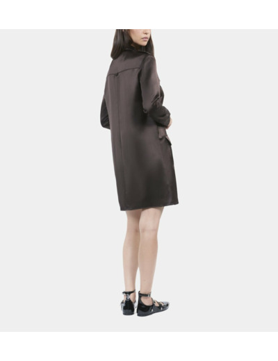 Adoptez l’élégance décontractée avec cette robe saharienne courte marron, un incontournable pour une allure affirmée et moderne. Sa coupe fluide et ses détails soignés incarnent un style à la fois chic et facile à porter.
