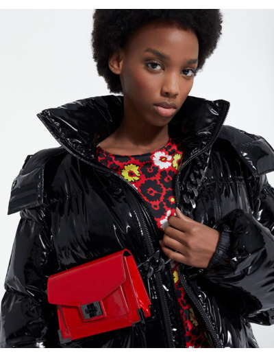 Composition et entretien : cuir glossy de haute qualité. Nettoyage recommandé à l’aide d’un chiffon doux et d’un produit spécifique pour cuir. Dimensions et compartiments non spécifiés.