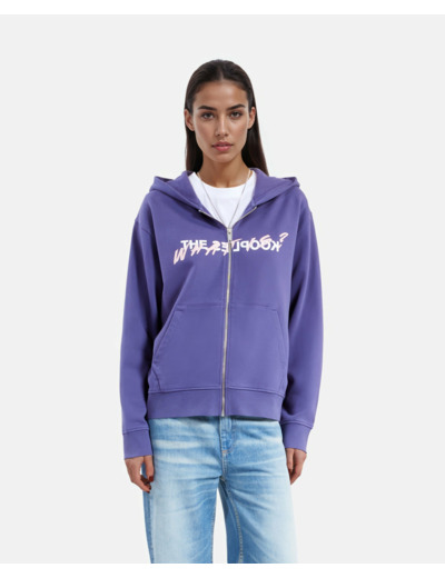 Conçu pour les femmes qui aiment la simplicité sophistiquée, ce sweatshirt se distingue par sa coupe droite et large, offrant une liberté de mouvement optimale. La capuche avec cordon de serrage et la fermeture zippée ajoutent une touche fonctionnelle et urbaine, tandis que la sérigraphie devant et au dos apporte un détail graphique unique. Idéal pour composer des looks casual-chic, il se porte aussi bien en journée qu’en soirée.