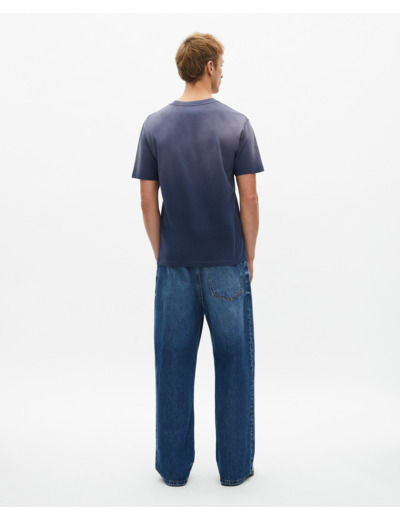 100 % coton délavé, coupe droite, col rond, manches courtes. Logo broderie surpiqûres. Chaque pièce est unique grâce au délavage artisanal non standardisé.