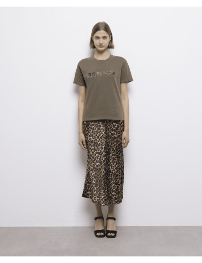 Affirmez votre style avec ce T-shirt à manches courtes au motif léopard, une pièce audacieuse et élégante signée The Kooples. Conçu pour sublimer la silhouette féminine, il allie modernité et caractère.